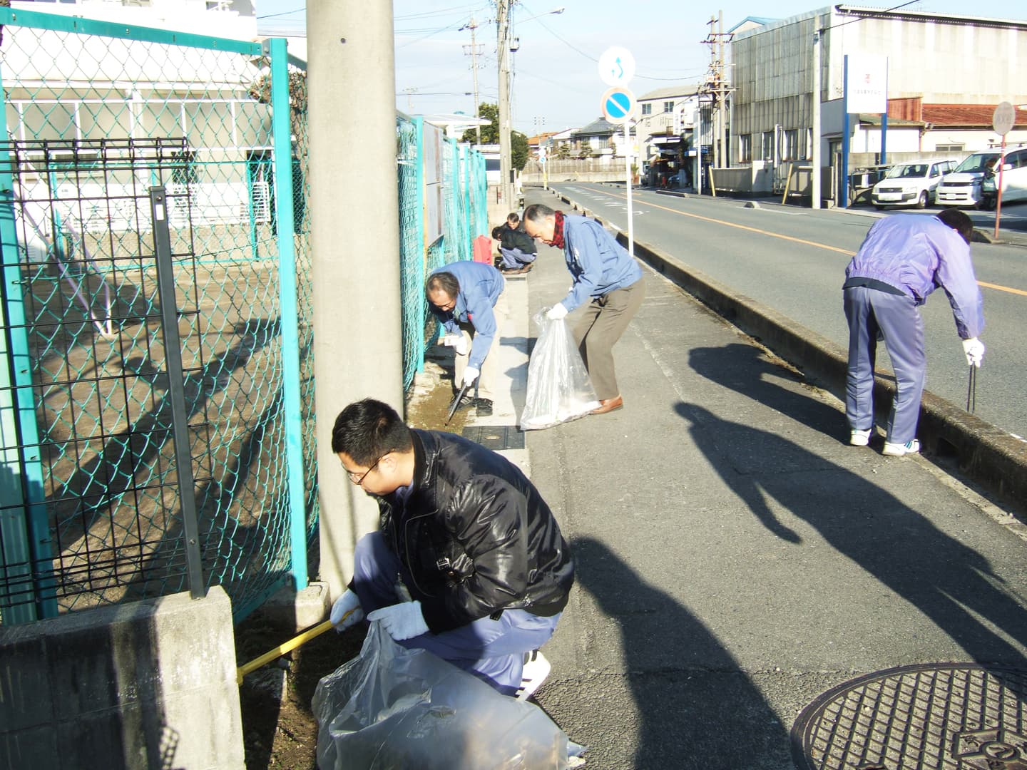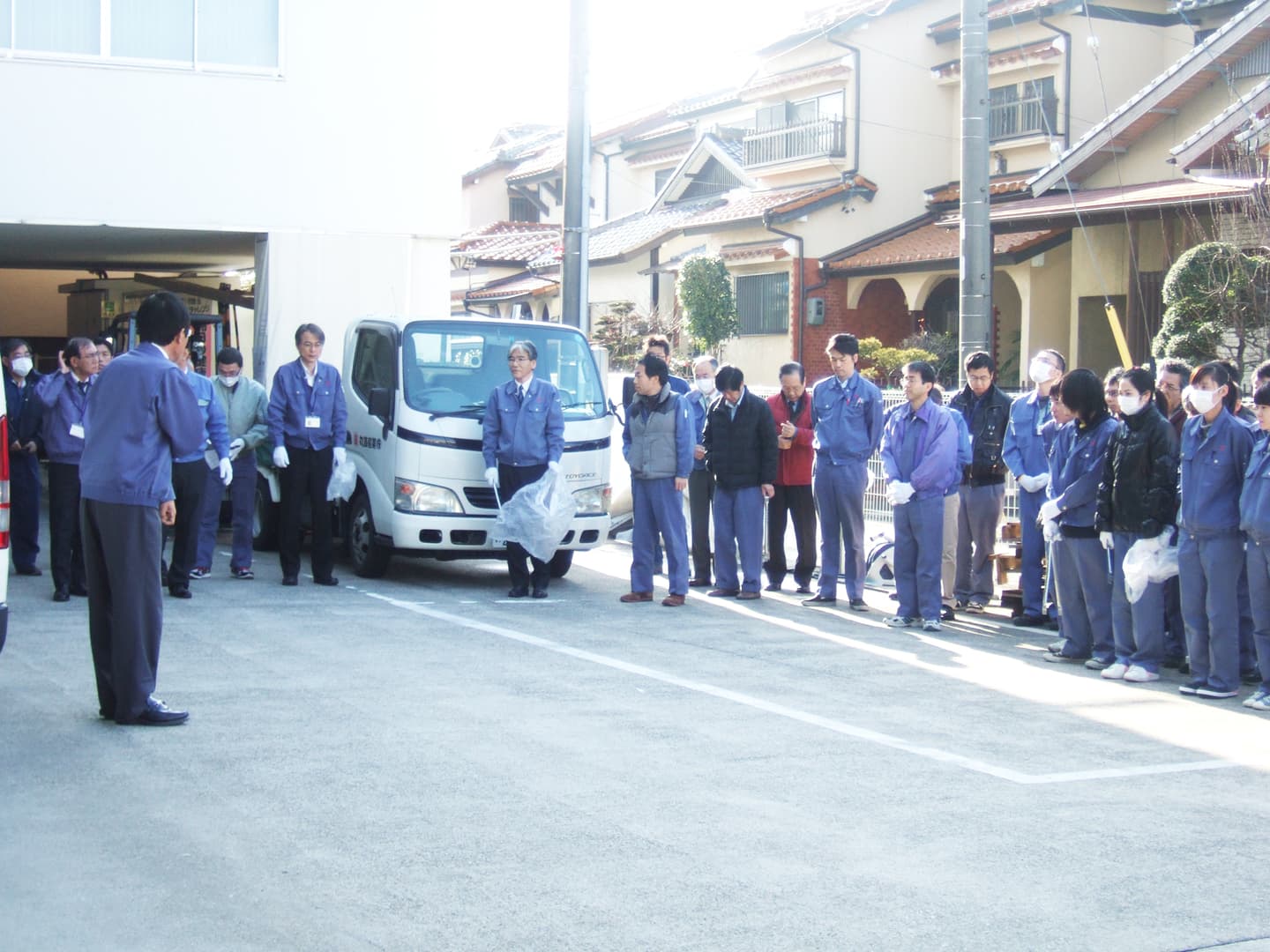 社員らのレクリエーションや地域清掃、全体朝礼の様子です。